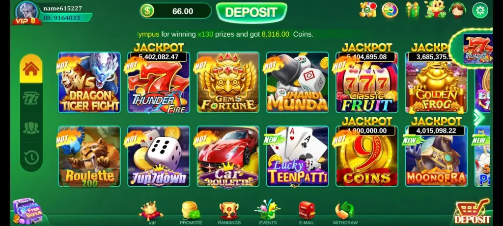 - Popular Games: Includes Rummy, Poker, Crash, and Dragon vs Tiger.